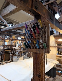This Monday, Group 5 took the initiative to visit the site in Macclesfield for the first time. After meeting with our collaborator, she guided us on a tour through the museum, walking us through each exhibition space and sharing her perspective on the current challenges the site faces. Seeing the space in person immediately helped us better understand some issues we had previously discussed. One challenge was that the exhibitions felt disconnected from one another in accessibility and theme. The access points between rooms were often unclear, which made navigation confusing and disrupted the overall visitor journey. We also observed that some areas felt cluttered, with displays competing for attention, while others were much more thought-out. The room with the looms and historic flooring, in particular, stood out for its thoughtful layout, demonstrating how impactful the space could be when designed with care. This contrast highlighted the potential for improvement across the rest of the museum. The layout itself was occasionally disorienting. For example, the first exhibition visitors encounter focuses on ancient Egypt, which feels unrelated to the museum’s core theme of silk. This raised questions about how the museum's narrative is introduced and whether the sequence of spaces could be restructured to create a clearer, more cohesive story, for example, by moving the initial access point and the cafe to the other side of the building. During the visit, we documented the space by taking measurements and photographs to support our later analysis and design work. This practical step felt important, as it gave us concrete information to refer back to when developing our design proposal. Overall, the visit was extremely valuable. Experiencing the museum firsthand gave us a much clearer understanding of both its strengths and its problem areas, and it helped ground our ideas for engagement and design in the realities of the space. The trip left us feeling better prepared for the next stage of the project.