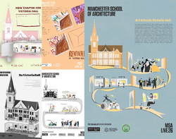 Our project reimagines Victoria Hall in Glossop as an affordable, flexible arts and community hub that supports local creatives and young people while strengthening long-term viability. Building on the renewed activity generated by the Market Hall, we propose a clear spatial strategy that activates both the ground floor and basement. A lightweight modular partition system enables the main hall to shift between exhibitions, performances, rehearsals, and markets, while improved vertical circulation and wayfinding draw visitors down to a reconfigured basement of studios and workshop spaces. These adaptable interventions support varied hire options, phased growth, and diversified income streams aligned with the Friends of Victoria Hall’s 10-year Business Plan. By combining low-impact design with operational flexibility, we balance innovation with respect for the building’s historic character, while strengthening community engagement and long-term sustainability.